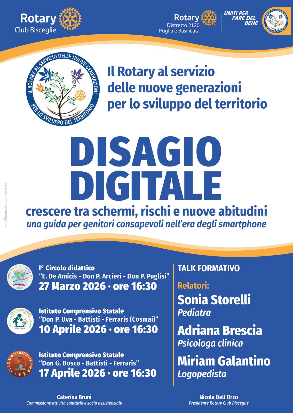 Di concerto con alcuni Istituti Scolastici cittadini, propone degli incontri formativi dal titolo "Disagio Digitale: crescere tra schermi, rischi e nuove abitudini", rivolto ai genitori dei bambini che frequentano la Scuola dell’infanzia e/o delle due prime classi della Scuola Primaria. Negli ultimi anni si è riscontrato un abbassamento dell’età media di accesso dei ragazzi agli schermi (smartphone, tablet, TV), l'obiettivo del progetto è offrire alle famiglie strumenti critici per gestire la tecnologia in modo consapevole, e fornire aspetti pratici con soluzioni concrete a problemi quotidiani.